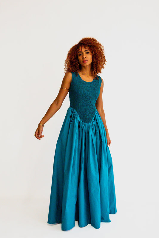 Sephora Smocked Drop Waist Dress - Aqua