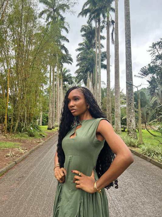 Dawn Linen Pleated Cut Out Dress [Pre Order]