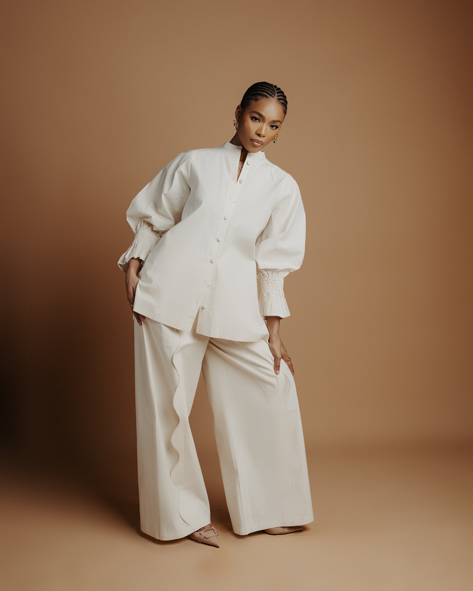 Indulge in the luxurious elegance of the Eden Set. Made from 100% cotton, this two piece set features an open back detail and signature embroidered curve detail for a sophisticated and exclusive look. Embrace the comfort and style of this must-have set.