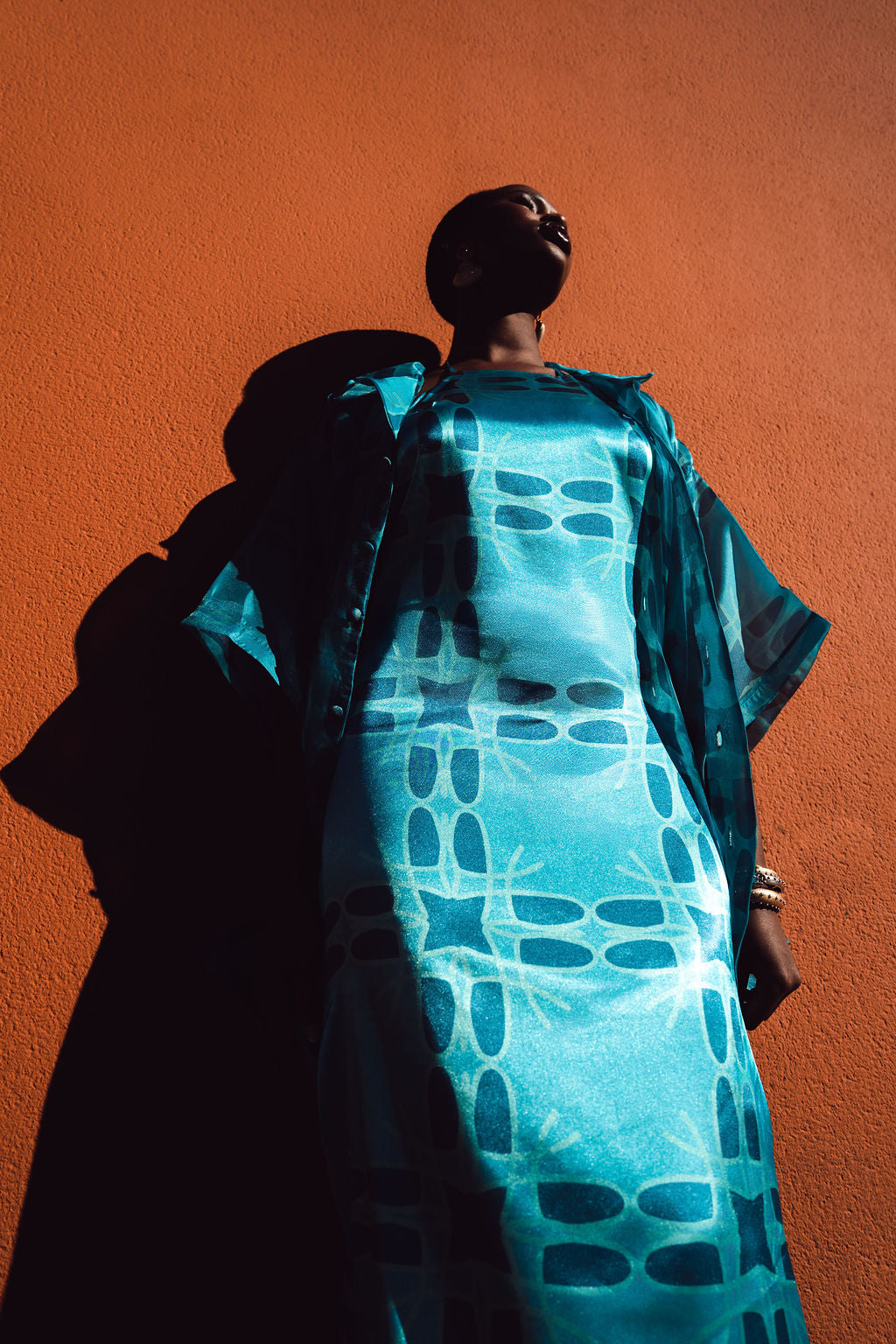 Effortless, chic elegance, that’s the Lotus slip open low back silk cut out dress. The satin slip dress features the Queen of Waves Print. Maximise the look by pairing it with the matching lotus organza shirt.