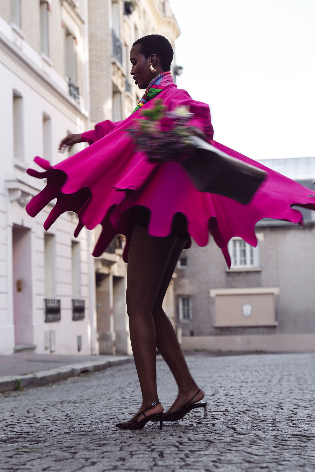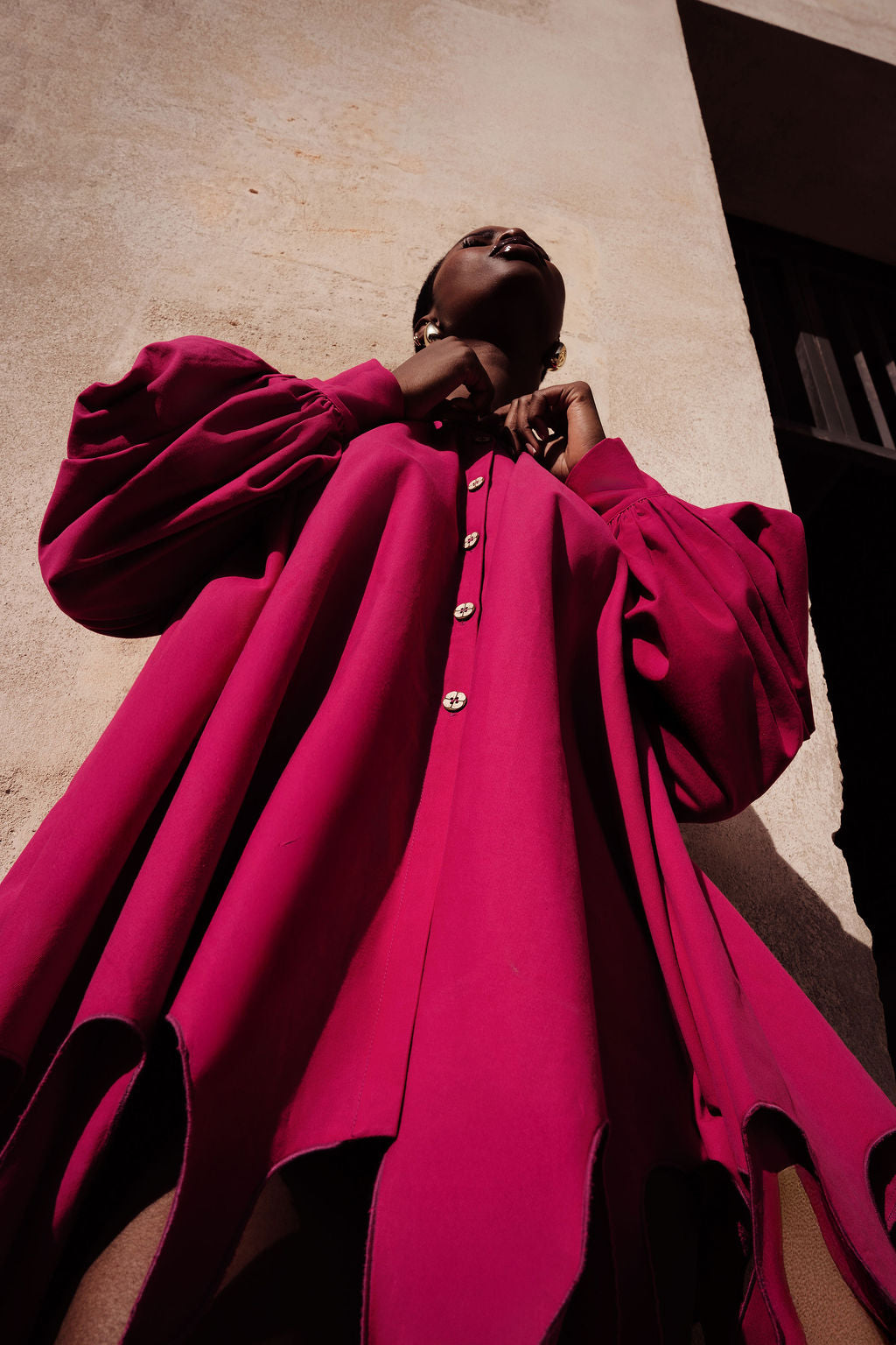 The SESTRA shirt; a sculptural masterpiece is back in Fuschia pink. It's a shirt like no other with our signature bottom drip hem in airy ivory linen with a fringed hem. Lightweight floral wooden buttons adorn the front closure adding an artisanal touch. a camp-style collar, while the long sleeves have a clean finish. Wear it with a pair of wideleg pants or shorts for a casual summer look while dancing or daydreaming.